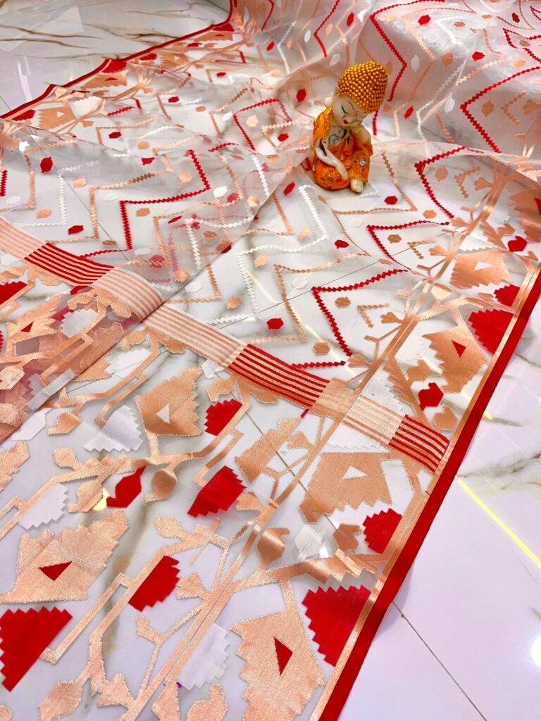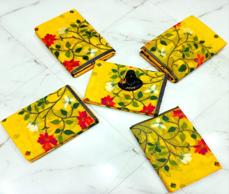 Cotton Resham / Half Mosline Tantuja Kalka Ful Design Saree With Worked B.P.