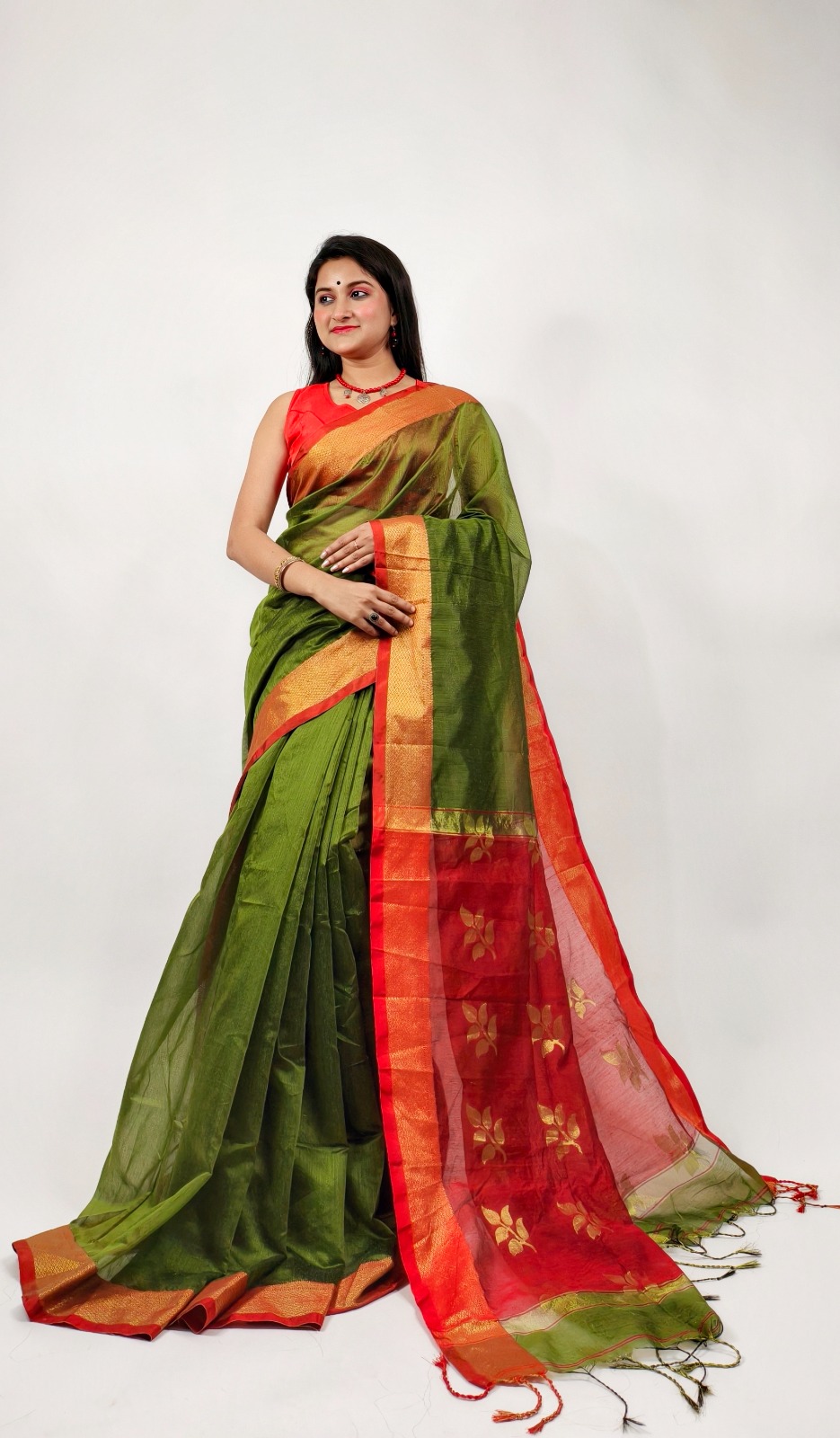 Cotton Silk Pata Buti Handloom Saree With B.P.